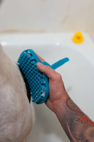 Groom, scrub and massage your mutt with this silicone grooming brush.