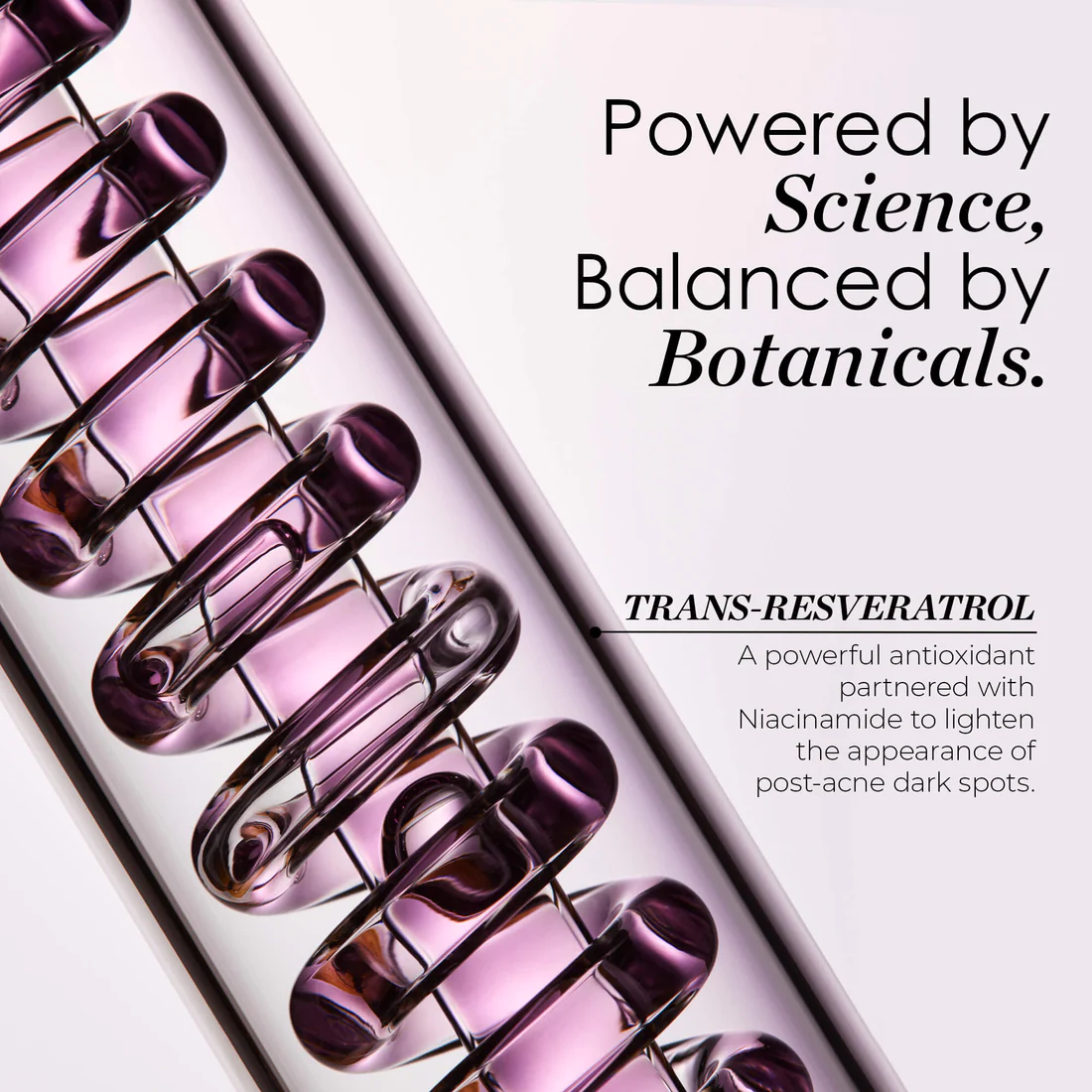 TRANS-RESVERATROL: A powerful antioxidant that neutralizes free radicals and partners with niacinamide to lighten the appearance of dark spots.