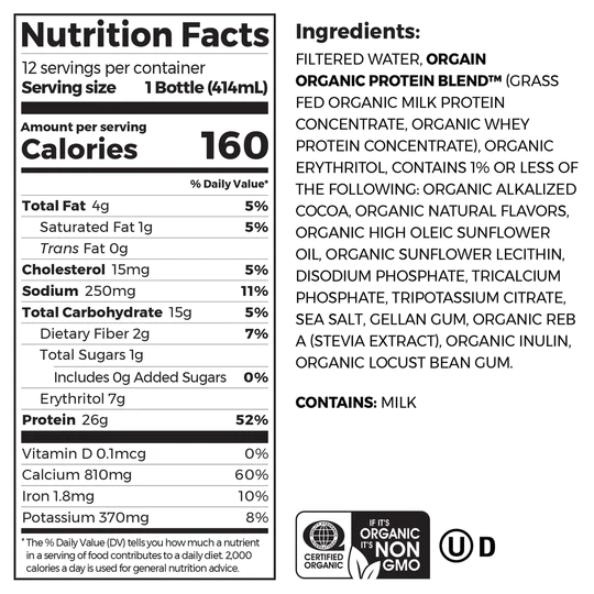 Orgain’s 26g Protein Shake provides the organic, grass-fed protein you need and the delicious taste you want. You work hard. Your protein should, too.